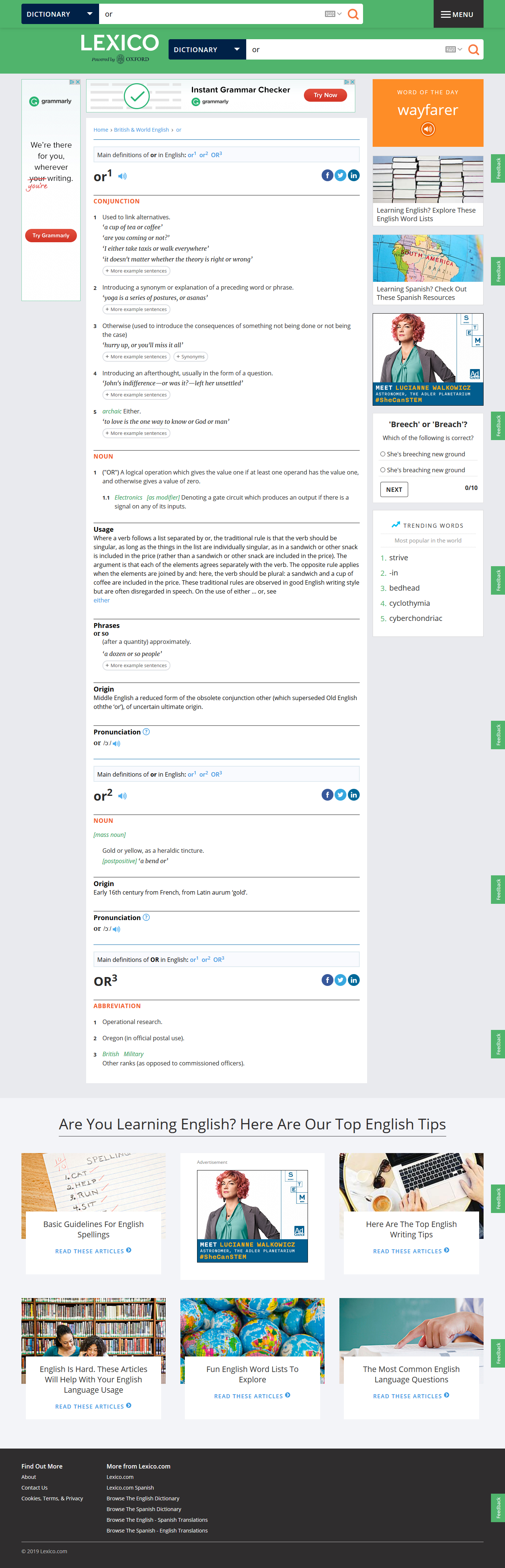 She has looked up the Lexico itself, for the word ■OR, and the word is to tell alternatives, synonyms, or afterthought.