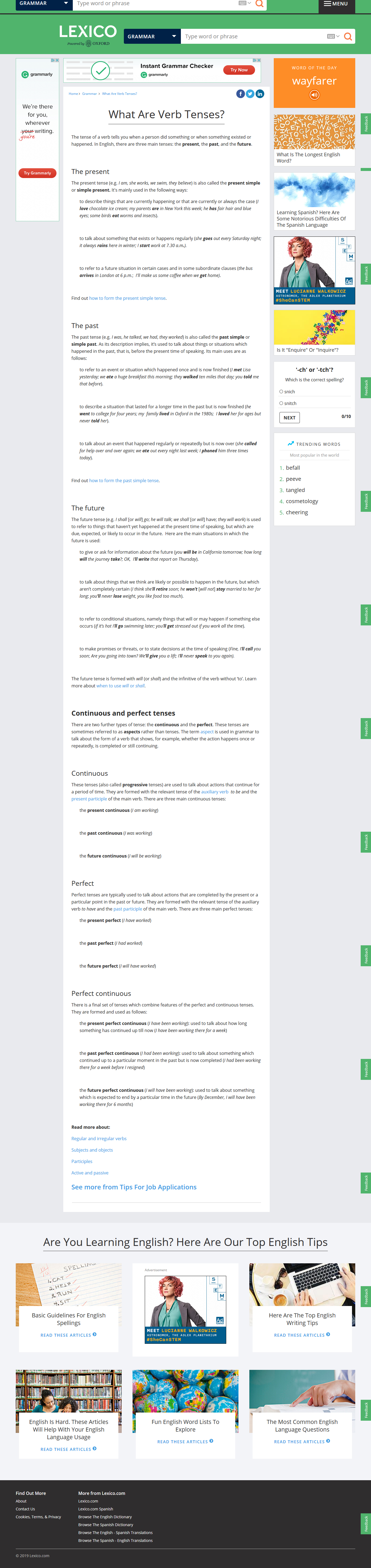 Travel in Grammar obviously is not the only place about grammar, and we may get plenty to read, in books or articles. For school or other language courses, we need to work classic grammar guidance. Let us begin with Oxford Dictionaries for verb tenses.