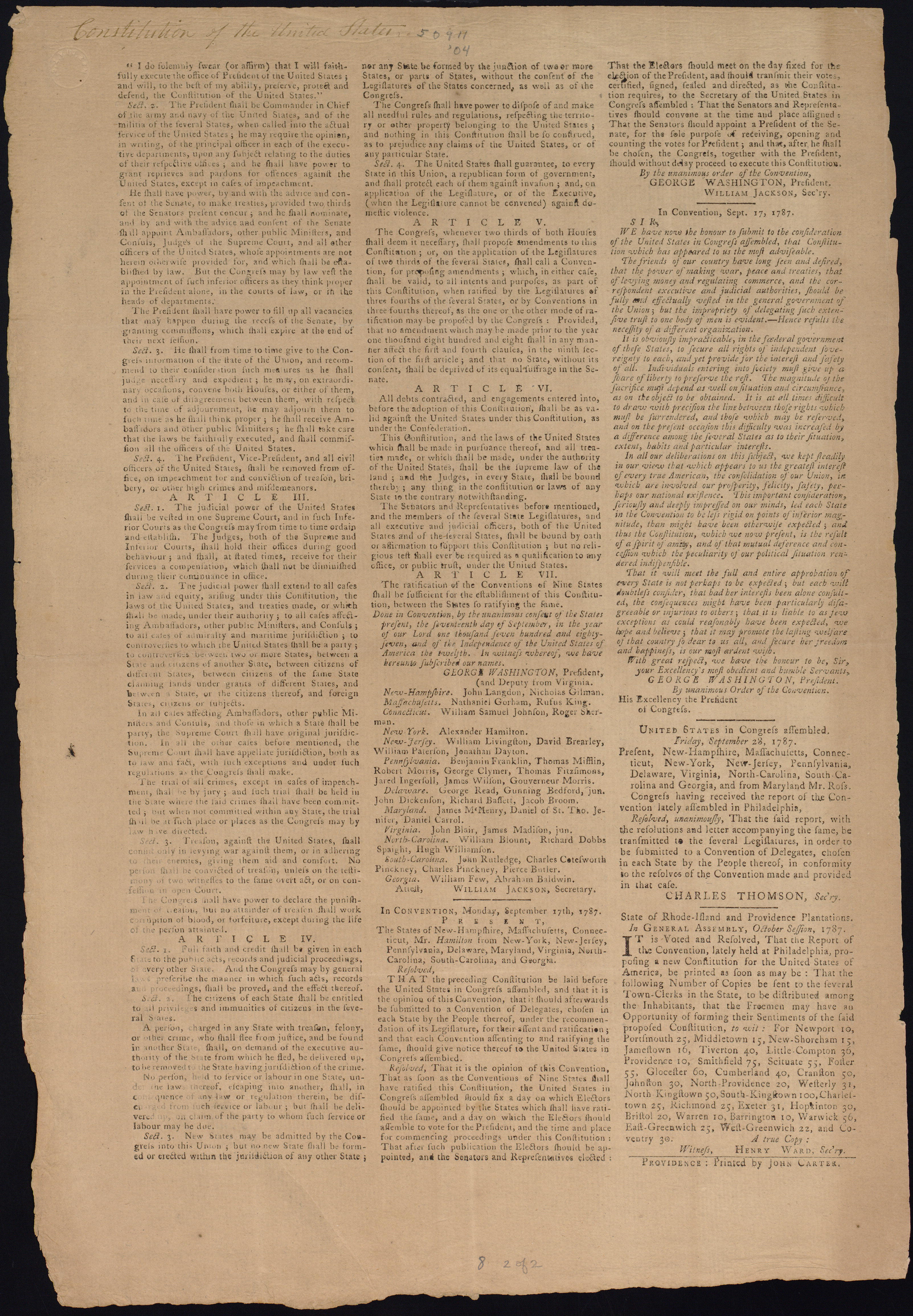 Done in Convention, by the unanimous consent of the States present, the seventeenth day of September, in the year one thousand seven hundred and eighty-seven, and of the independence of the United States of America the twelfth.